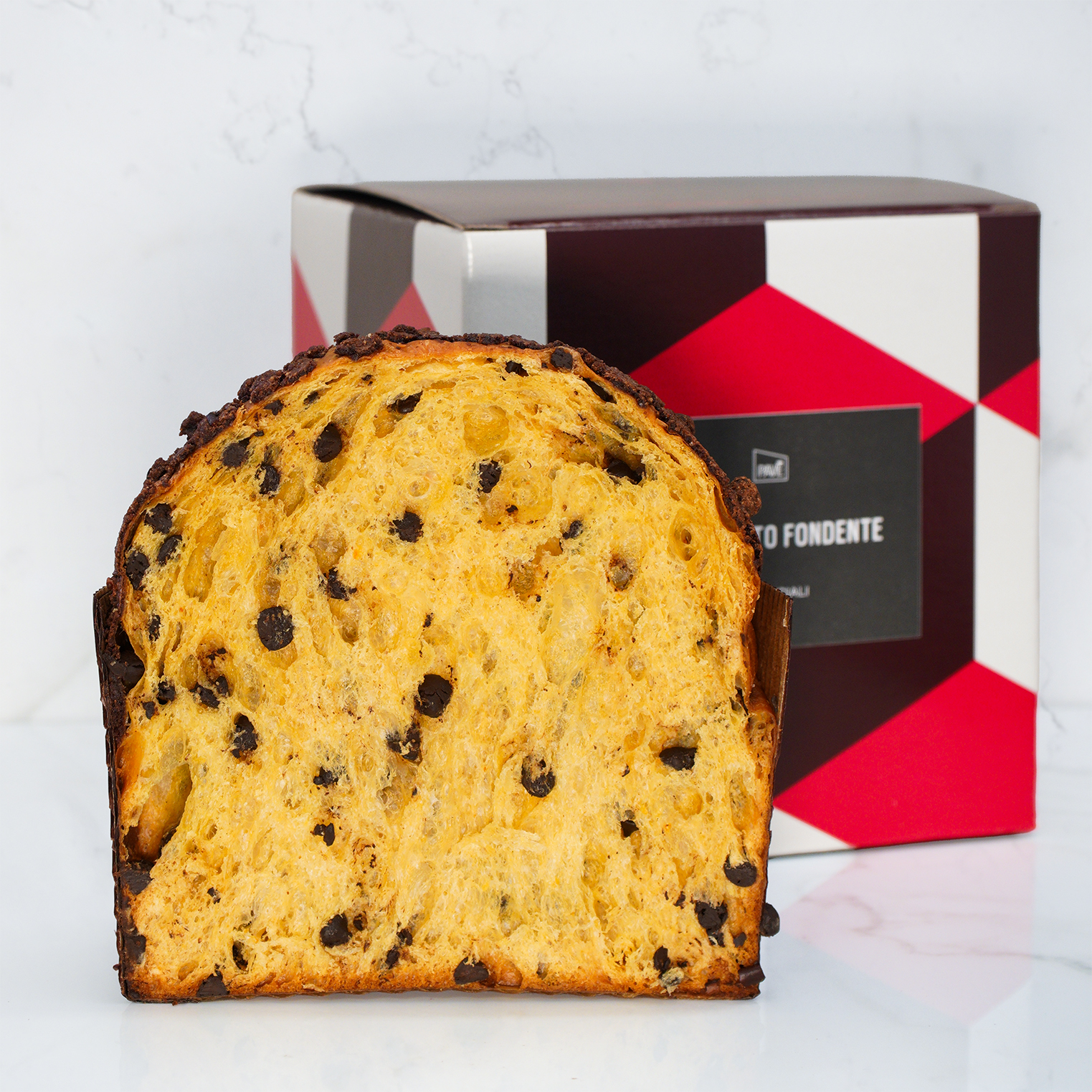 Il nostro panettone al cioccolato fondente nel suo formato kg, con glassa al cacao arricchita da crumble con fave di cacao.