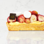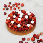 Frolla [farina di GRANO tenero tipo 0, farina di MANDORLE, burro (LATTE), UOVA, zucchero, sale], frangipane [farina di MANDORLE, burro (LATTE), UOVA, zucchero, amido di mais], crema pasticciera [LATTE, panna (LATTE), tuorlo d’UOVO, zucchero, amido di riso, vaniglia del Madagascar], fragoline di bosco, meringhe alla francese (albume d’UOVO, zucchero semolato)