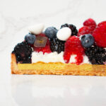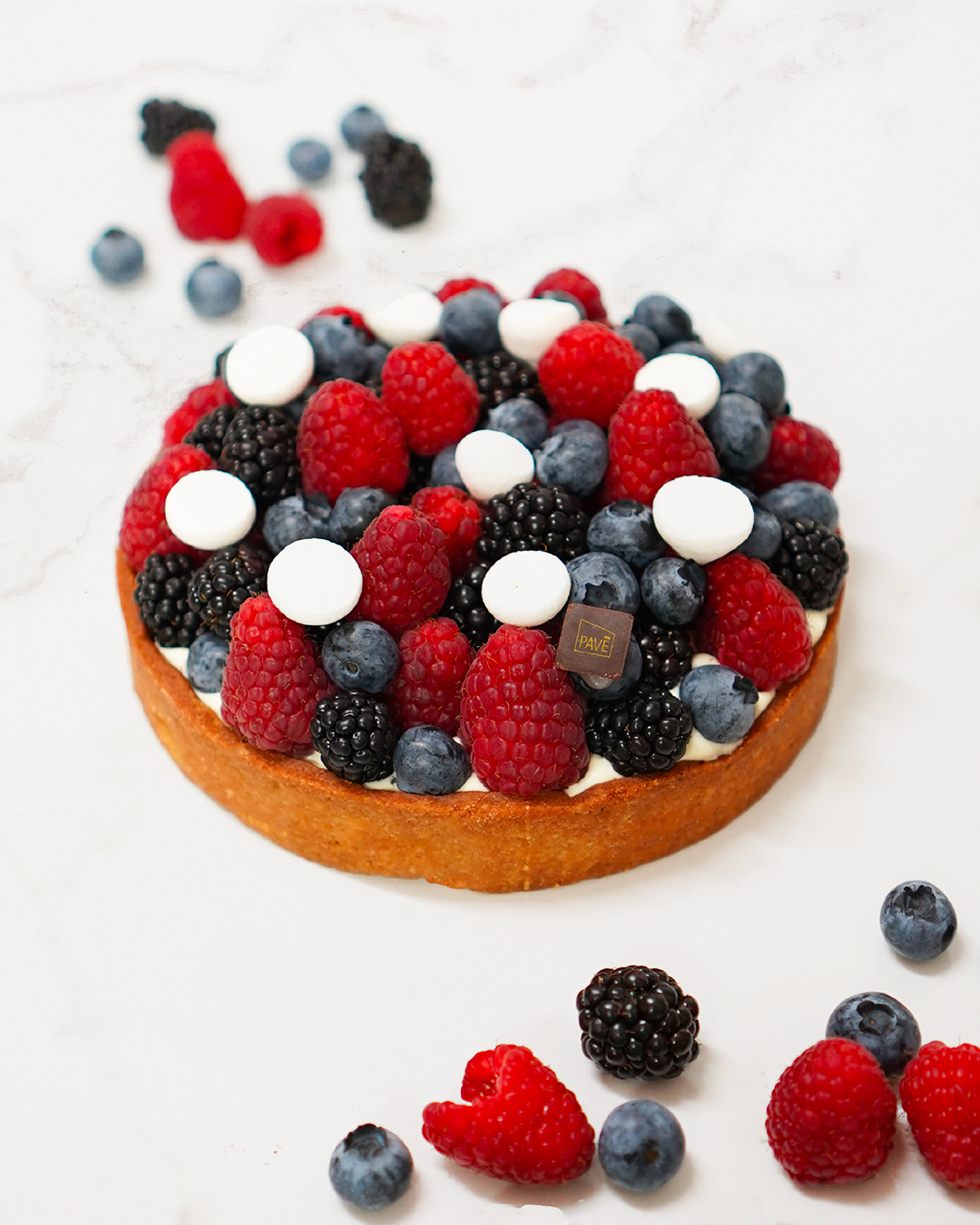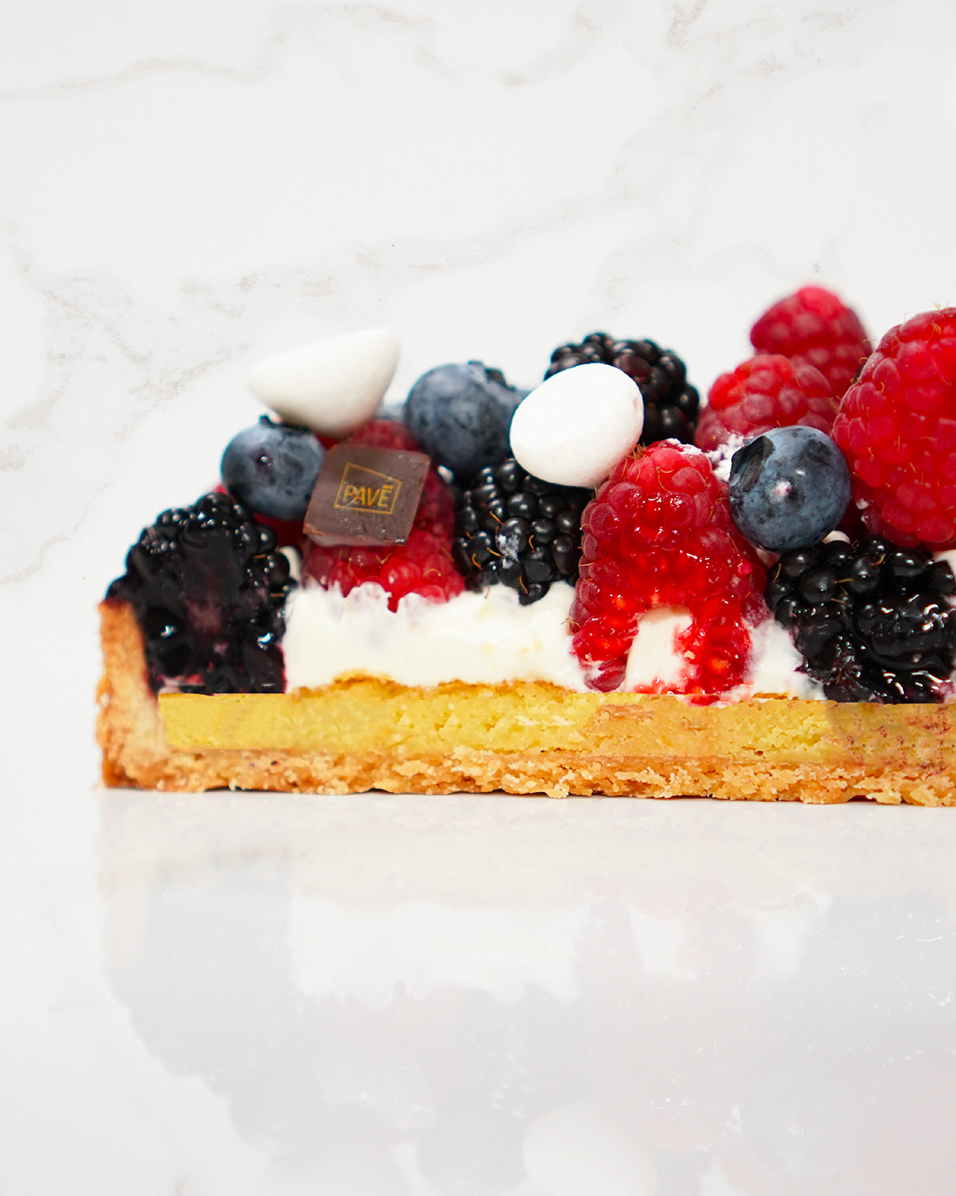 La nostra crostata ai frutti di bosco misti, con frangipane alle mandorle e crema alla vaniglia del Madagascar.