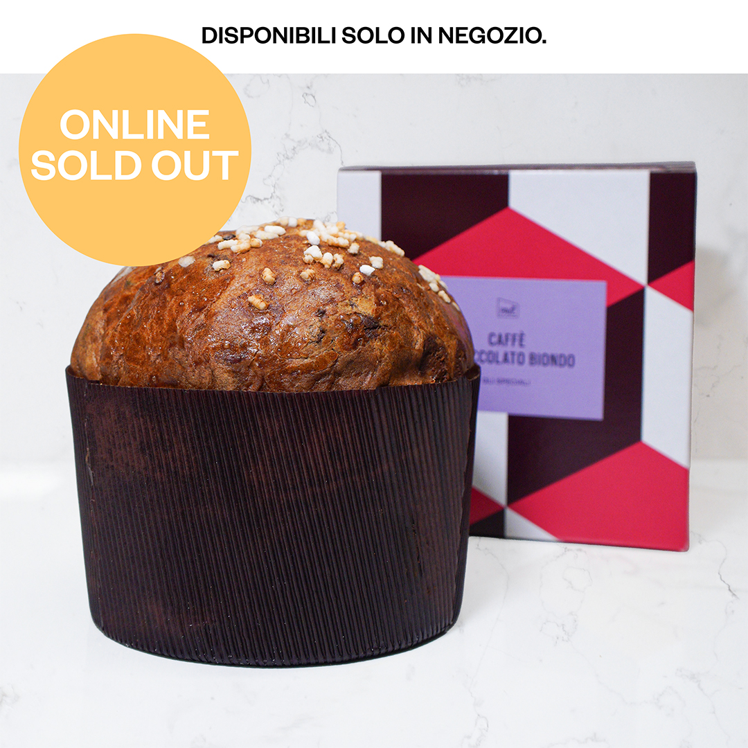 Farina di GRANO tenero tipo 0, cioccolato biondo 32% [burro di cacao, zucchero, LATTE intero in polvere, LATTE scremato in polvere, siero di latte, burro (LATTE), lecitina di SOIA, estratto naturale di vaniglia], burro (LATTE), acqua, tuorlo d’UOVO, zucchero, lievito madre (farina di GRANO tenero tipo 0, acqua), miele biologico, pasta di limone, caffè, sale, glassa [UOVA, panna (LATTE), tuorlo d’UOVO, granella di zucchero]