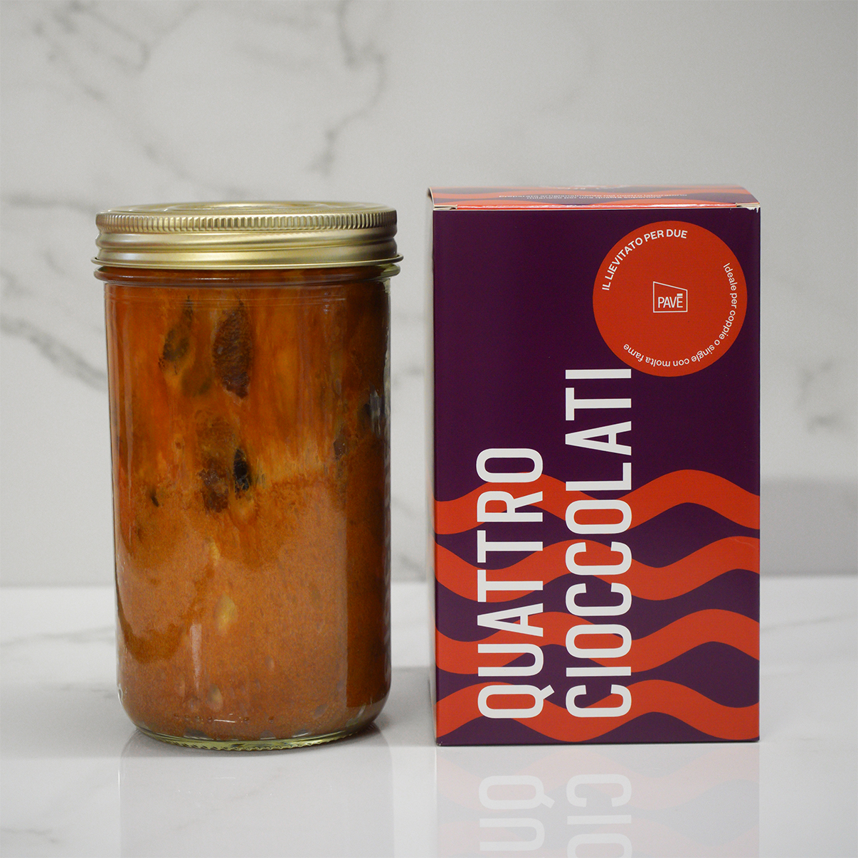 Il nostro Panettone ai quattro cioccolati (bianco, biondo, al latte e fondente), nel suo formato da 250g. Ideale per la coppia o per single con molta fame!