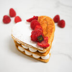 Una torta speciale a base di sfoglia, crema chantilly alla Fava di Tonka e lamponi freschi.
