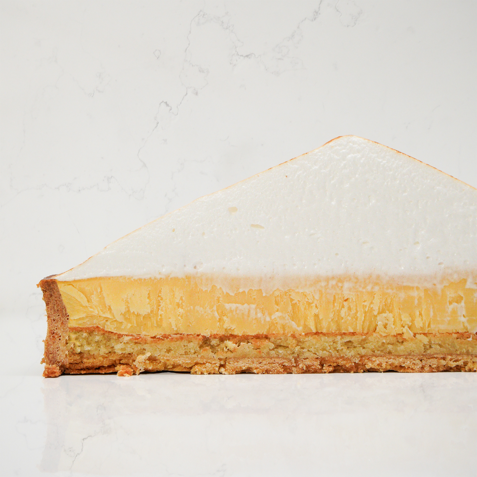 La nostra crostata con frangipane alle mandorle, cremoso al limone e una morbida meringa all'italiana.