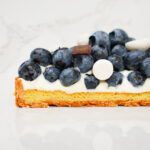 La nostra crostata solo mirtilli, con frangipane alle mandorle e crema alla vaniglia del Madagascar.