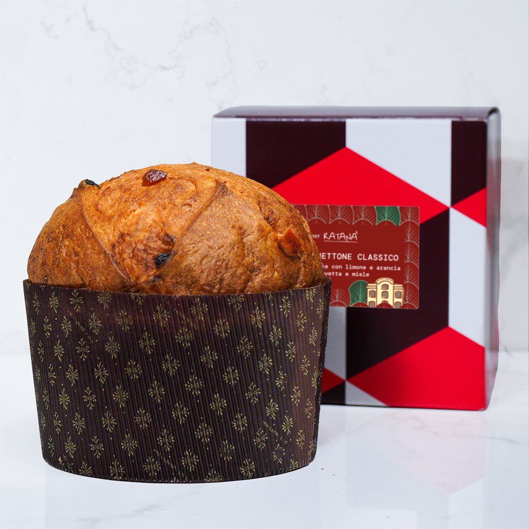 Ingredienti: Farina di GRANO tenero tipo 0, burro (LATTE), tuorlo d’UOVO, lievito madre [farina di GRANO tenero tipo 0, acqua], zucchero, arancio candito (scorzone d’arancio, zucchero, sciroppo di glucosio), limone candito (scorzone di limone, zucchero, sciroppo di glucosio), uva sultanina, pasta di scorza di limone [limone candito (scorzone di limone, zucchero, sciroppo di glucosio), zucchero, sciroppo di glucosio], miele biologico, sale, vaniglia del Madagascar.