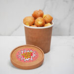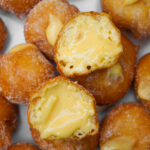 Impasto: farina di GRANO tenero tipo 0, UOVA, burro [LATTE], zucchero, sale, scorza di limone, acqua – cotti in olio di semi di girasole, ricoperti di zucchero semolato e farciti in fase di servizio.